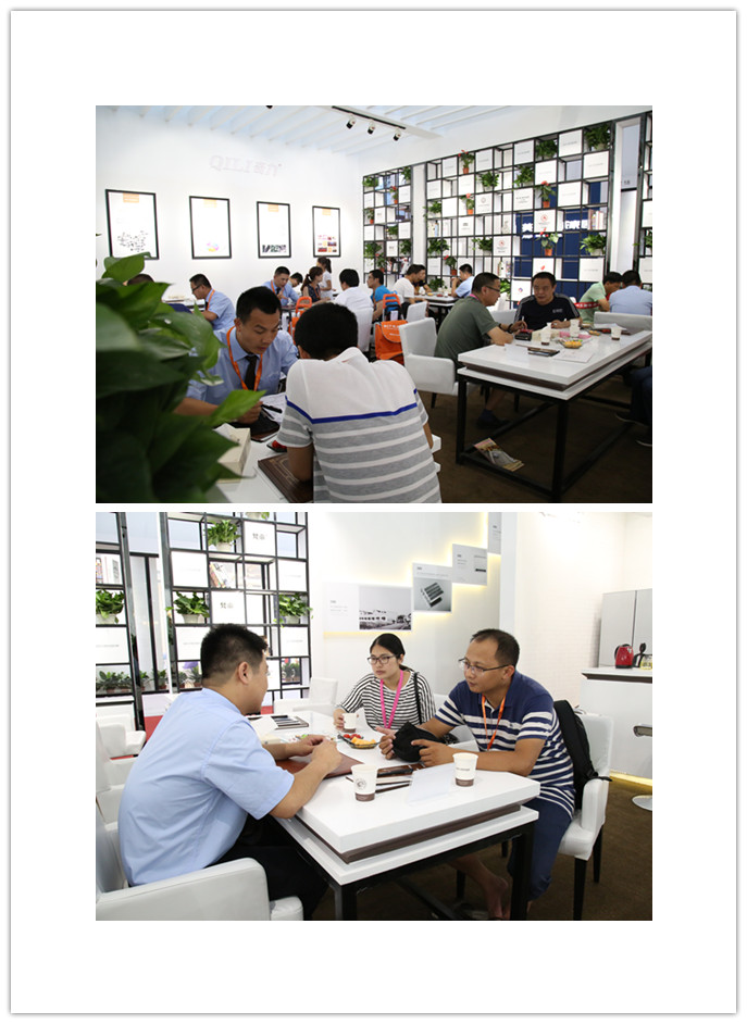會客區,舒適的環境,輕松的談話,誘人的招商政策,過硬的產品質量,加盟是觀展者明智的選擇。2016年奇力已經歷10年的風雨路程,此次廣展主題“10年見證奇力品質”為主調,發展模式,思維方法都重新規劃,是為了未來更好的發展。