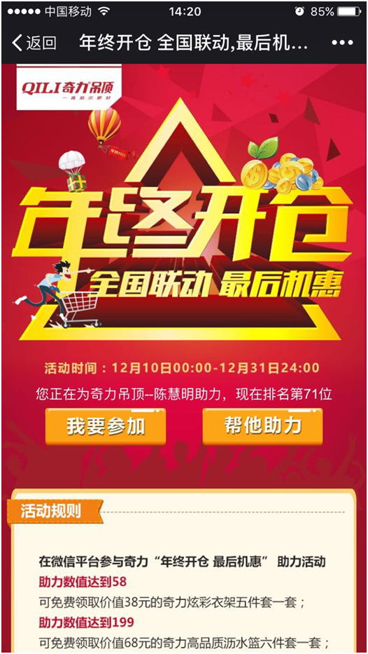 本次“年終開倉 最后機(jī)惠”還有一項(xiàng)微信助力活動,您可以在微信平臺參與。